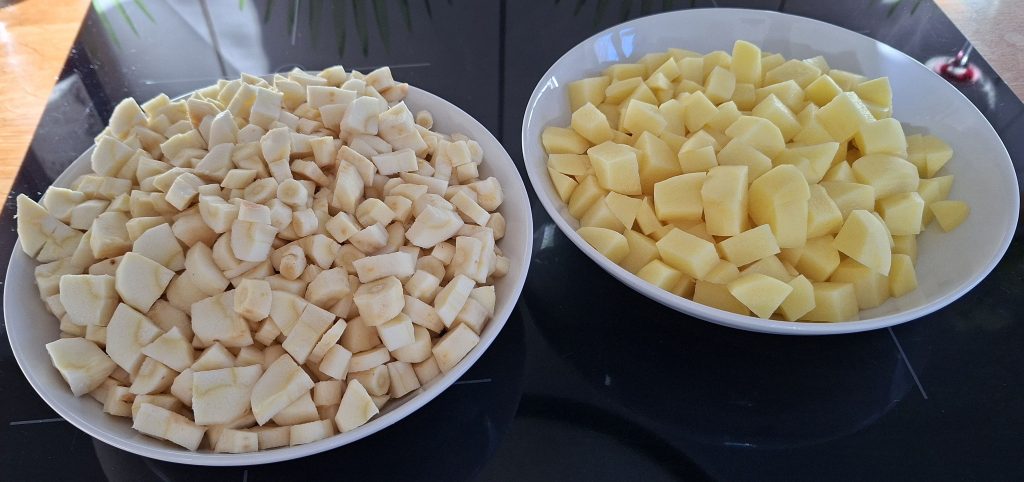 Bei den Kartoffeln gab es mit der Sorte Muse zum Glück keine großen Ausfälle durch die Feuchtigkeit. Im Gegenteil sind die Knollen so durch das Wasser angeschwollen, dass wir überwiegend Kartoffeln in der Größe für Pommes eingelagert haben.